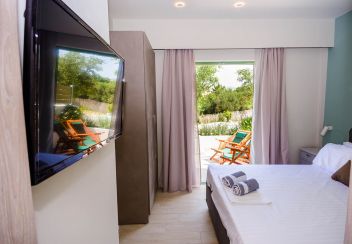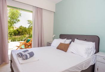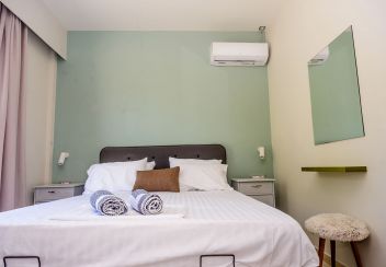 Pan Apartment was built in 2019 and consists of a separate bedroom with a queen bed, spacious shower / bathroom and a fully equipped kitchen to be independent during your stay.